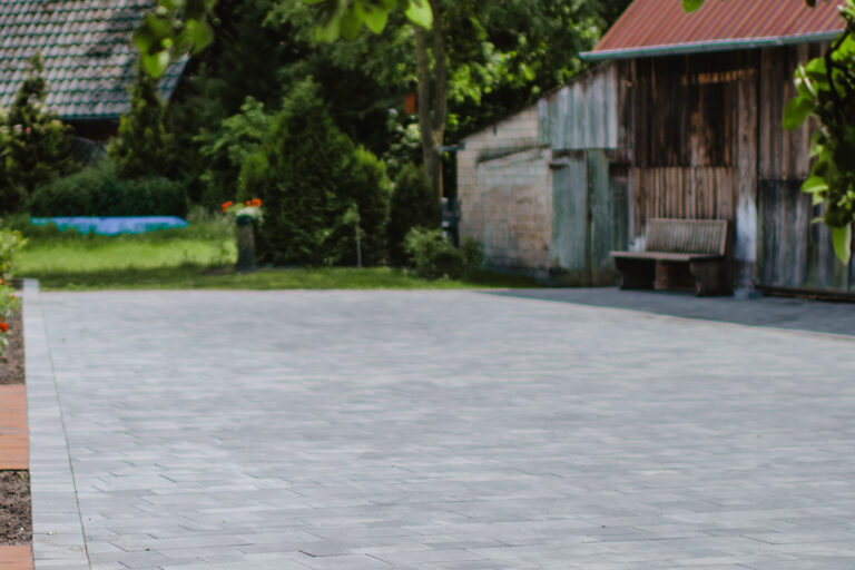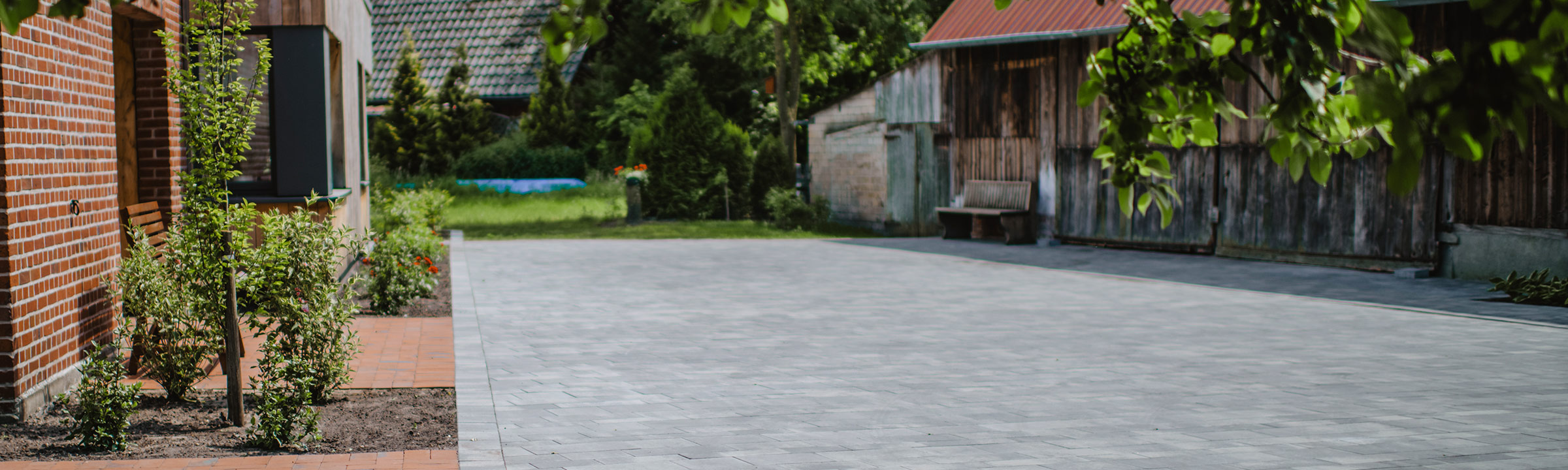 Der Hofgarten ist über eine Zuwegung mit einer neuen Klinkerstein-Belegung zu erreichen. Wir übernahmen den Abriss der alten Hoffläche sowie die komplette Neuplanung und Gestaltung des Hofbereichs. Auch die Gefälleplanung war Teil der Aufgabe. Der hintere Teil des Gartens wurde durch neu angelegte Bepflanzung, überdachter Terrasse und Klinkerwegen von Grund auf neu gestaltet.