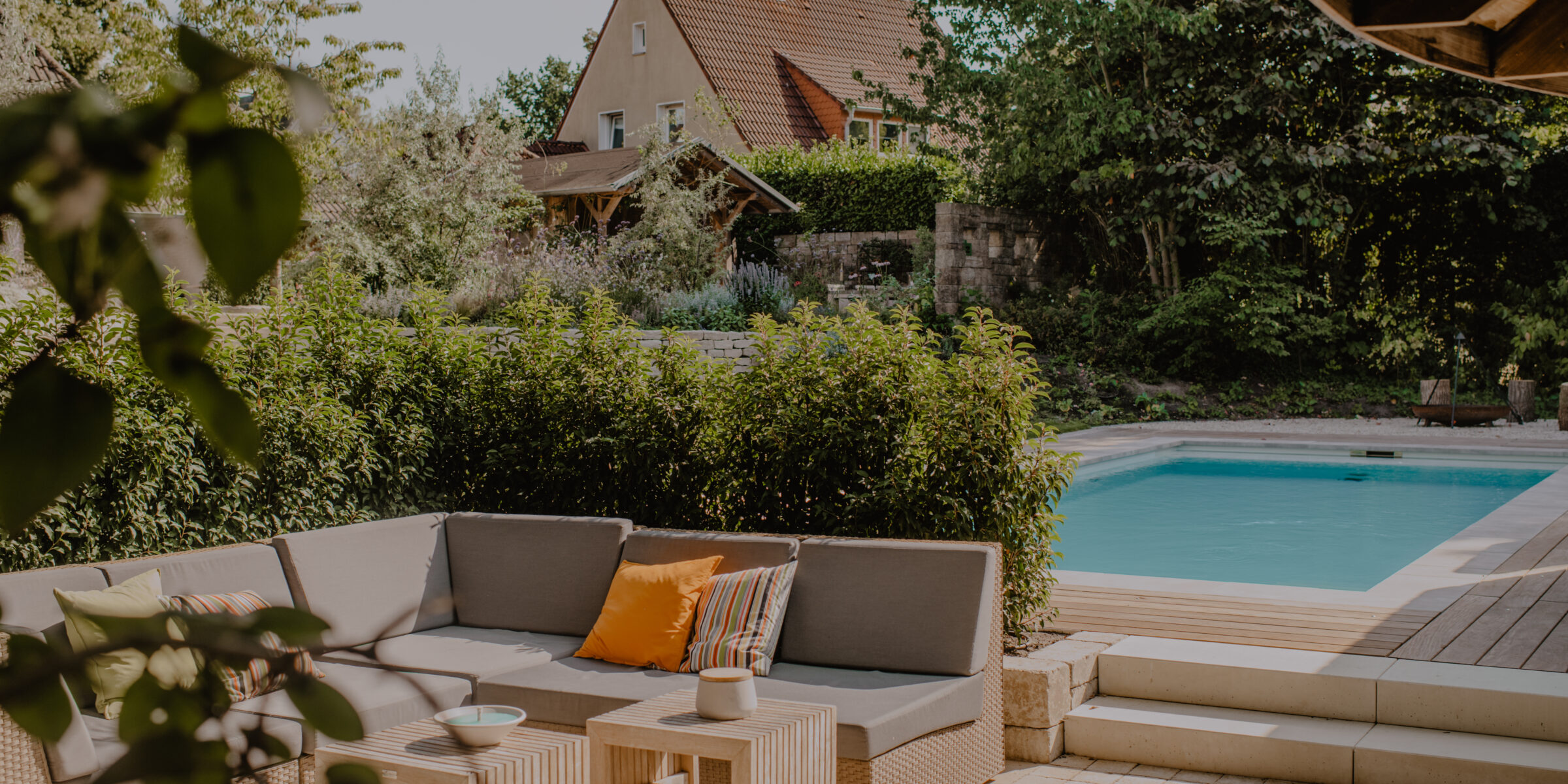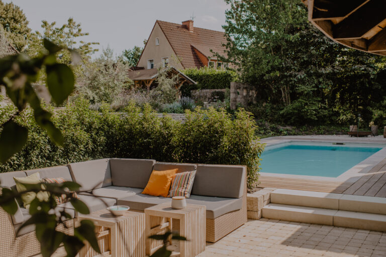 Bei diesem Projekt wurde ein trister und grauer Garten in eine einladende und moderne Pool-Landschaft mit Außendusche verwandelt. Das von uns entwickelte Konzept lässt den Garten offener wirken, alte Betonelemente wurden ausgetauscht und die Terrasse vergrößert. Für das perfekte Wohlfühlerlebnis wurde ein kleiner Holzplatz und 3 Sitzecken hinzugefügt. Außerdem wurden Stauden gepflanzt, durch die der Garten jetzt lebendiger und frischer wirkt. Besonderheiten der neuen Pool-Landschaft sind das technisch raffinierte Bewässerungssystem, sowie die Beleuchtung. Der Bau eines Schildkrötengeheges und die Beheizung und Abdeckung des Pools erfolgte ebenfalls durch das ML GartenPlus Team.